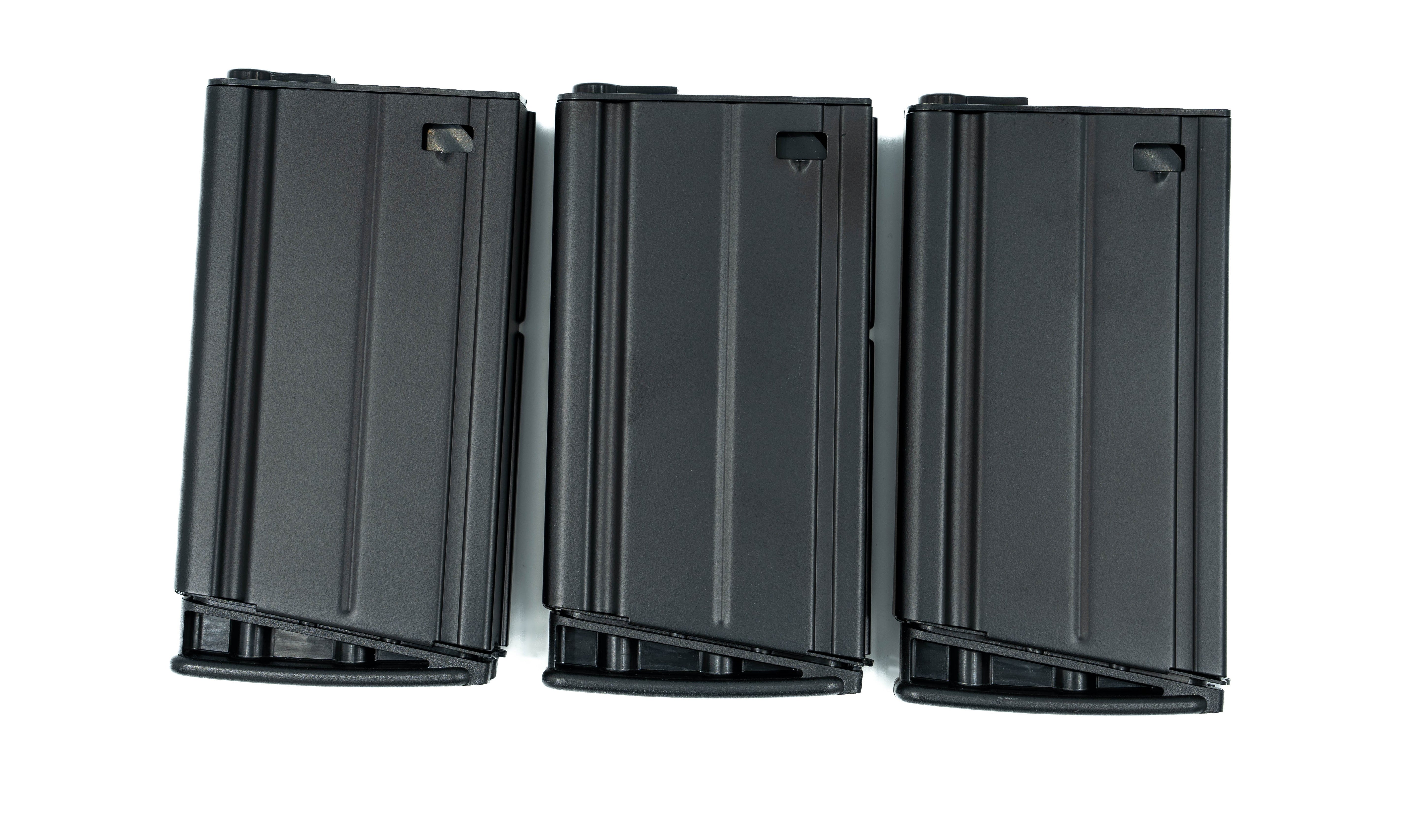 Each magazine features a raised floor plate which protects the magazine against drops on to hard surfaces during tactical reloads. Capable of holding up to 160 rounds each, these rattle free magazines are a must have if you own a VFC SCAR-H SSR.
